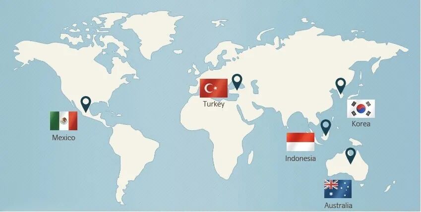 具体来看,韩国是全球半导体和制造业重镇,墨西哥是北美制造业版图的重要一环,印尼是东盟的领头羊和资源大国,土耳其是连接欧亚的战略枢纽,澳大利亚是能源与矿产的关键供应地。
